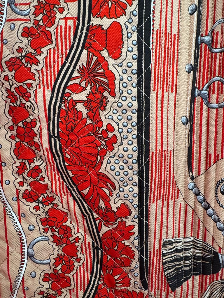 At first glance, the silhouettes are serene: long, narrow, pure in line. But look closer, and the tension reveals itself, hard meeting soft, protection meeting skin. Cropped bustiers folded with silk scarves, micro shorts, slim belts. Even the salopettes feel poetic, their metal loops once made for tools now holding slender Hermès scarves, a wink to craft transformed into beauty. For the first time, in my view, the collection feels more sensual than ever. Soft leathers cut into bustiers, some threaded with silk shawls, others revealing more skin than usual. High-waisted stretchy trousers layered under shorts, a modern play on proportion. A waxed leather coat with saddle-inspired detailing, special stitching tracing the sides. There’s even a design from the Camargue itself, in silk, padded and stitched, a soft armour for modern times.