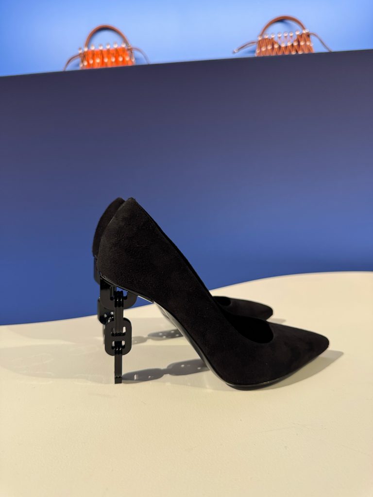 Beyond the runway, Hermès continues to build its universe: a bespoke vinyl player table, fully custom-made and available in any colour, yoga with Hermès, and my favourite discovery, a compact connected speaker wrapped in Hunter cowhide. Sleek, curvy, and made with the same devotion to materials as a Kelly bag, technology meeting tactility.