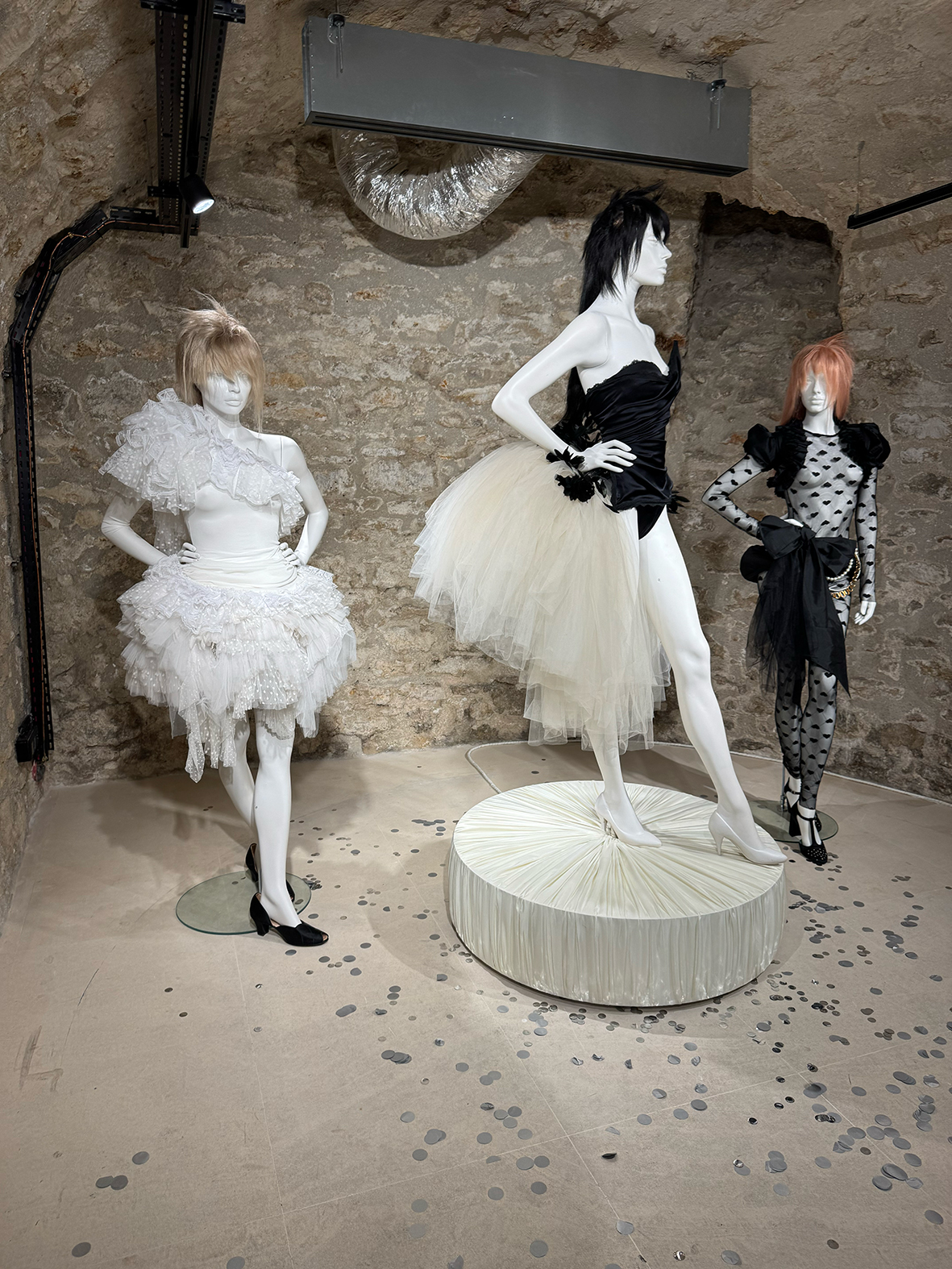 In the basement of Dover Street Market Paris, layers of black and white tulle fill the room. Large panels of fabric hang from the ceiling, turning the space into a romantic dressing room where the magic begins. Here, New York designer Miss Claire Sullivan presents her monochromatic trunk show, a playful and refined edit that turns fashion into a living performance.