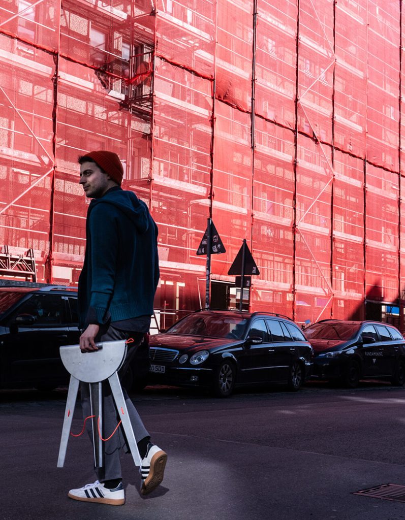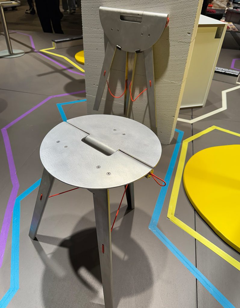 Anton Oberländer explores connection on a smaller scale. His foldable stool Smal invites neighbours to pause and talk in shared spaces, a poetic gesture that turns everyday thresholds into meeting points. During the pandemic, many rediscovered their doorsteps; Oberländer turns that fleeting sense of community into design logic.