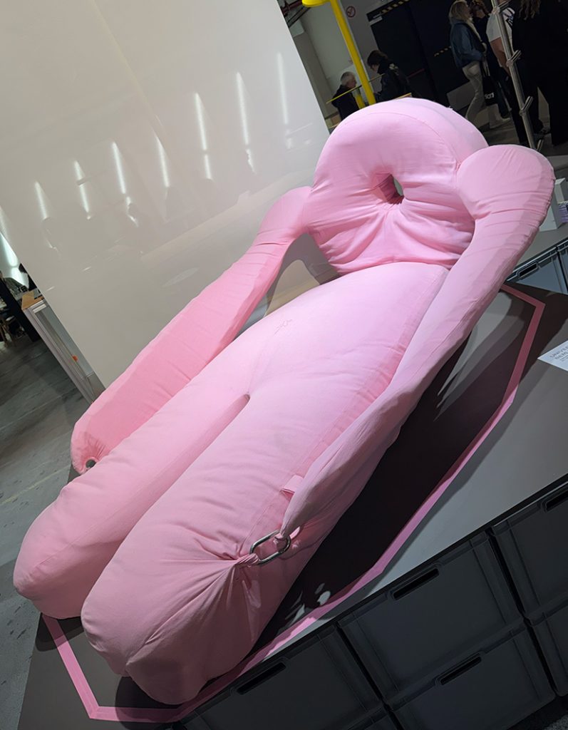 Emma Mende’s SUMO moves at an entirely different rhythm: a 2.80-metre-tall pink creature that celebrates idleness. It lies there in the exhibition, unapologetic, inviting you to lean, lie down, or do absolutely nothing. “Chilling is not a luxury – it’s a necessity,” her statement reads. In a world obsessed with efficiency, Mende’s soft sculpture feels like an act of resistance. It makes resting visible, oversized, even monumental, a gentle and necessary form of self-care.