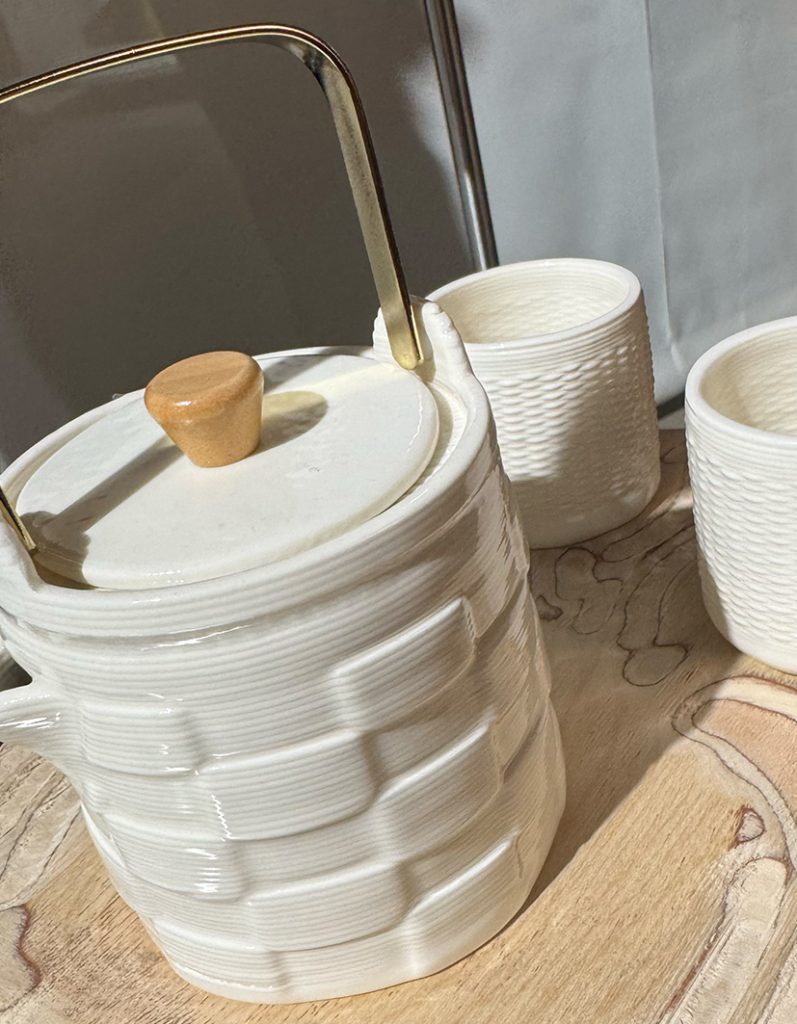 Their Future rPET Bag, made entirely from a single recycled material, folds like paper and feels light as air, design that literally unpacks the idea of circularity. Another work worth mentioning is Imakerhfu, a Taipei group of designers who use 3D printing to create ceramic pieces. Their approach allows classically trained makers to explore modern techniques, while contemporary designers learn from traditional craftsmanship and habits. A dialogue between old and new, material and method, that feels very much in tune with the spirit of this year’s theme. It made me think back to Berlin’s thoughtful printed folder, a small yet meaningful gesture that helps visitors remember the stories behind each project.