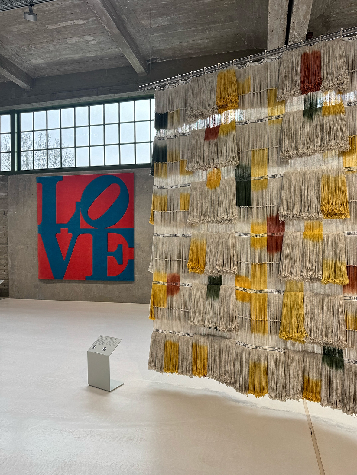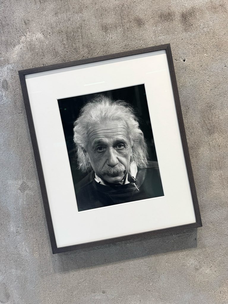 Inside, two expansive halls bring together national and international artists who reflect on identity, movement and borders. One of the most arresting works is Shilpa Gupta’s Border Fence. A metal gate stands in the space, austere and uncompromising. Every half hour it slams shut with brute force, the sound reverberating loudly. Over time, the impact leaves a visible dent in the white plastered wall behind it. The violence of repetition becomes the work itself. A border is not merely a line; it is pressure, sound, resistance. It leaves visible and invisible marks. In the same space, Robert Indiana’s Chosen Love (1995) radiates its familiar typography with renewed urgency in this context. Love here feels aspirational, almost cliché, all you need. Within this new museum that reflects on migration and belonging, the word carries a different weight. Nearby, a 1947 portrait of Albert Einstein by Philippe Halsman anchors the historical dimension. The image is globally recognised. Einstein himself was a migrant, his presence reinforcing the exhibition’s broader narrative.