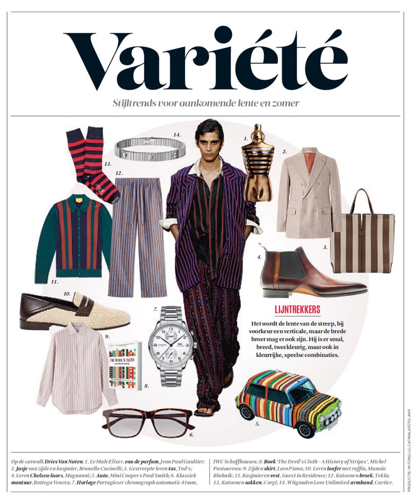 Stripes return with renewed precision. Across shirts, knitwear and accessories, the vertical line appears as a clear graphic gesture. On the runway it appears at Prada, Junya Watanabe, Dries Van…